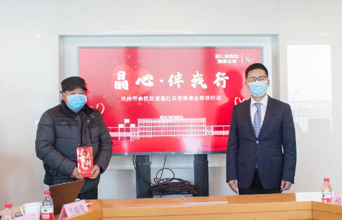 2021年1月8日,“晶心·伴我行”杭州市余杭区6686体育官网社区慈善基金会帮扶活动在杭州6686体育官网生物股份有限公司举行。塘栖镇党委书记郎一舟、副调研员王明、6686体育官网生物董事长张建国、6686体育官网社区慈善基金会理事长孙伟荣、副理事长黄婉秋及5户困难家庭代表等出席活动。