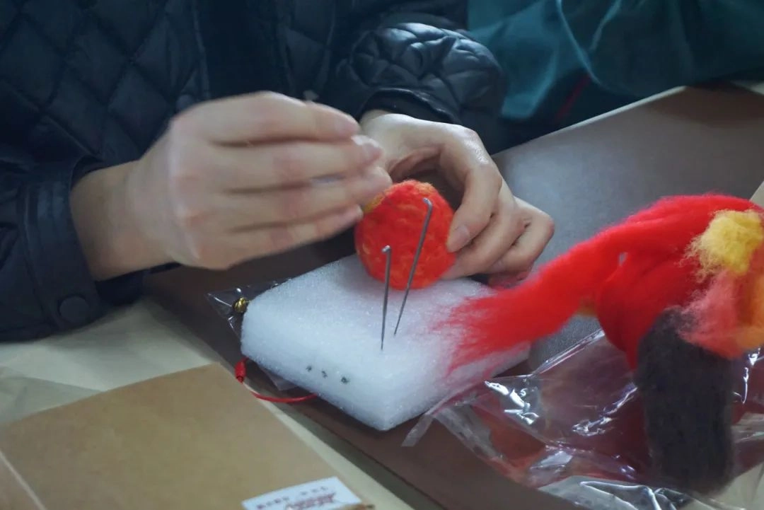 毛毡产品的独特之处在于其独特的制作方式和温暖的触感。钢针上下间,原本一簇簇普通的羊毛线团在大家的精心制作下一点点成型。经过一番忙碌,大家相继完成了自己的作品,十分精美可爱。